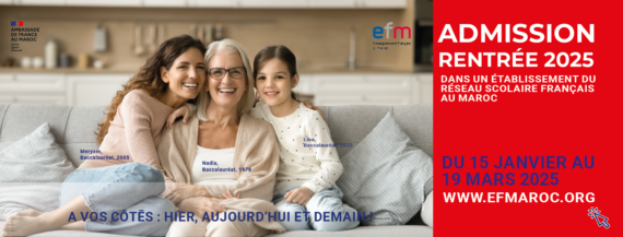 🌍📚 Admissions ouvertes ! 📚🌍 Vous rêvez d’offrir à votre enfant une éducation d’excellence ouverte sur le monde ? 🌟 À partir du 15 janvier 2025, les inscriptions pour les nouveaux élèves du réseau de l’enseignement français au Maroc sont ouvertes ! 🎓 💡 Pourquoi choisir notre réseau ?✔️ Programmes […]