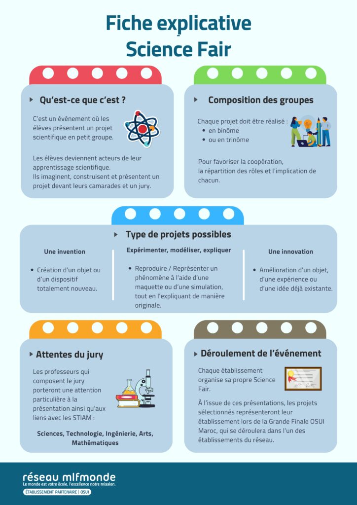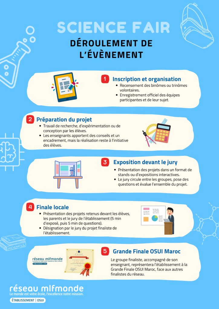 Une ambiance à ne pas manquer Entre rires et découvertes, la Science Fair promet une journée inoubliable. C’est un moment où l’on apprend, mais surtout où l’on partage. Un moment où les élèves deviennent chercheurs, inventeurs ou présentateurs… le temps d’une journée.